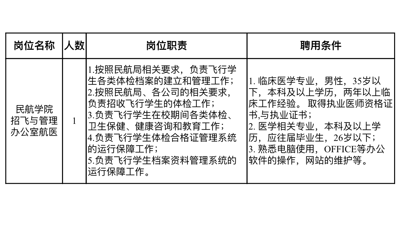 根据工作需要,成人抖音 拟以劳务派遣方式招聘航医1名,具体要求和工作职责如下: