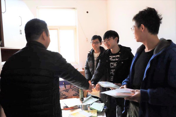 12月18日中午,成人抖音 党委副书记李和新、辅导员张秋寒以及成人抖音 15级党支部成员一起走进学生宿舍,慰问即将走上考场的考研学子,并给他们送去了考研大礼包。在寒冷的冬日里给他们送去了学院的温暖关怀。