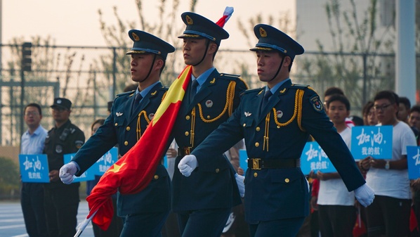 9月30日上午,时值国庆前夕,成人抖音 天目湖校区隆重举行“敬礼祖国 建功时代”升国旗仪式。民航/飞行学院全体新生参加仪式。