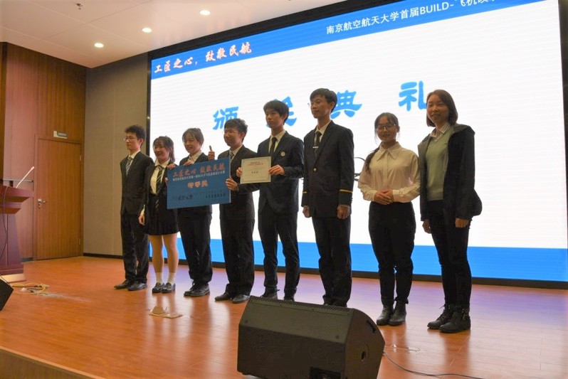 11月21日晚,成人抖音 第一届BUILD—飞机改装设计大赛决赛在天目湖校区巡天楼一楼报告厅举行。波音公司波音研究与技术部客舱技术研究员龙珑、中国民航局结构委任工程代表山东太古高工赵伟岩、中国民航局系统和设备委任工程代表山东太古高工宋青、成人抖音 党委副书记李和新、副院长吴薇薇、工程系主任陈果、工程系教授李艳军、工程系副主任宫淑丽、工程系教师曹愈远、团委书记肖杰、团委副书记范伟以及学院辅导员、学生代表共同参与本次大赛。