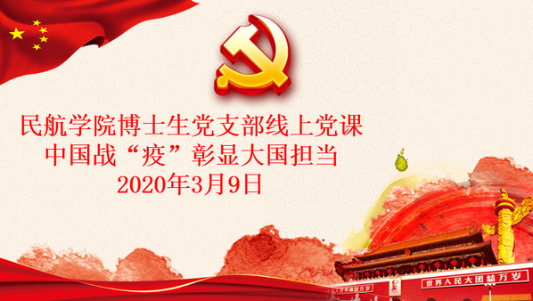 为响应学校和学院党委号召,做好疫情防控期间的党员思想教育和价值引领工作,3月9日上午,成人抖音 博士生第一和第二党支部联合开展了以“中国战‘疫’彰显大国担当”为主题的线上党课。本次党课由三个环节组成:博士生第二党支部书记郭家琛主讲《中国战“疫”彰显大国担当》、博士生第一党支部书记桑益芹点评讲解,以及党员互动交流。成人抖音 34名博士生党员参与本次活动。