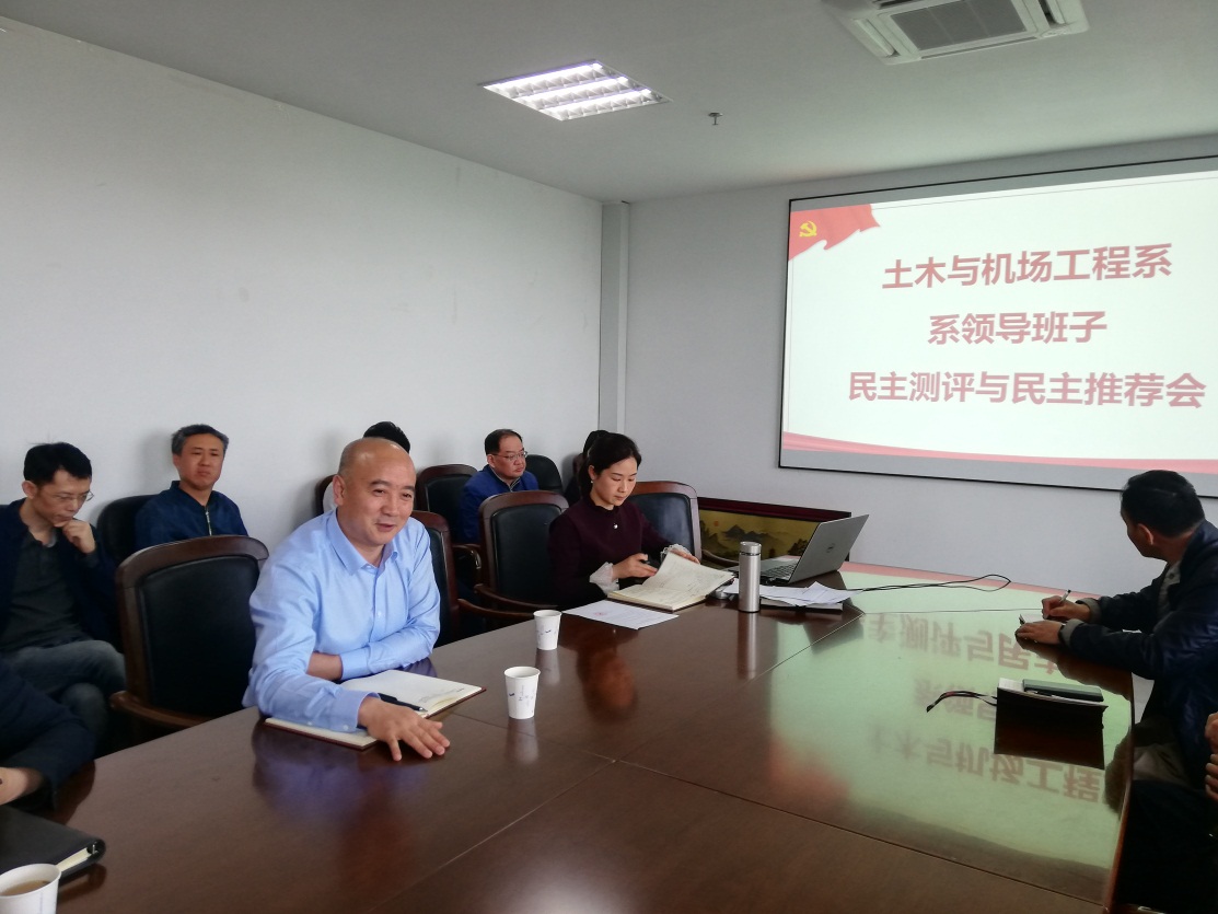 4月29日下午,土木与机场工程系行政班子和党支部换届工作在学院801会议室举行。土木与机场工程系全体教师及党员参加会议,学院党委书记刘建成、副书记李和新到会指导工作。