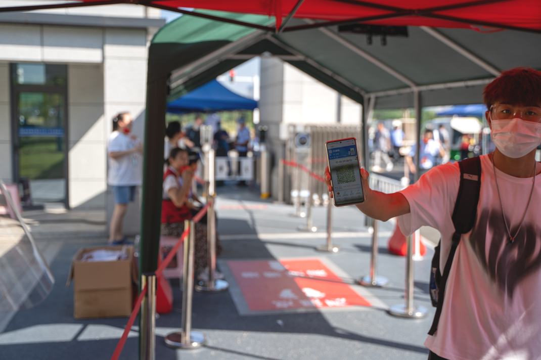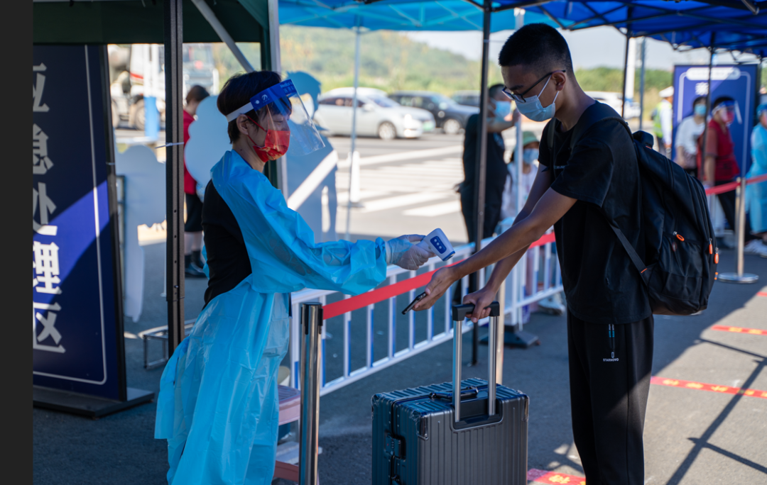 返校现场,井然有序。学员遵守返校相关流程要求,配合做好健康码、行程码的检查和体温检测等环节。