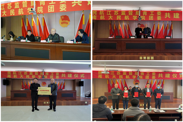 刘建成感谢民航江苏监管局多年来对成人抖音 发展建设和人才培养的关心和支持。本次团委共建以青年团支部为依托,通过选派行业团学导师,组织支部学习、知识讲座、就业讲座、企业实习等活动,对民航青年教师和学生开展零距离行业教育,也为双方单位的青年提供进一步相互学习、彼此促进的宝贵机会。同时,促进双方单位深度战略合作,创新性的推动民航领域“行业+专业”融合教育模式。