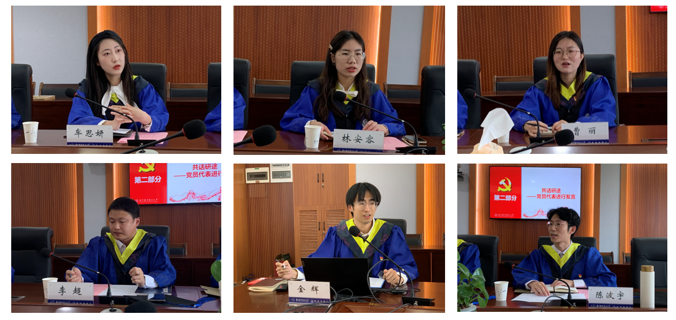 与会学生党员依次分享自己读研期间的成长收获、就业去向和前进目标。大家在表达对学校、对老师、对同窗好友感谢之情的同时,纷纷表示将铭记母校教诲,秉承南航精神,继续努力前行,让青春绽放绚丽光彩,以实际行动报效祖国,为母校争光。