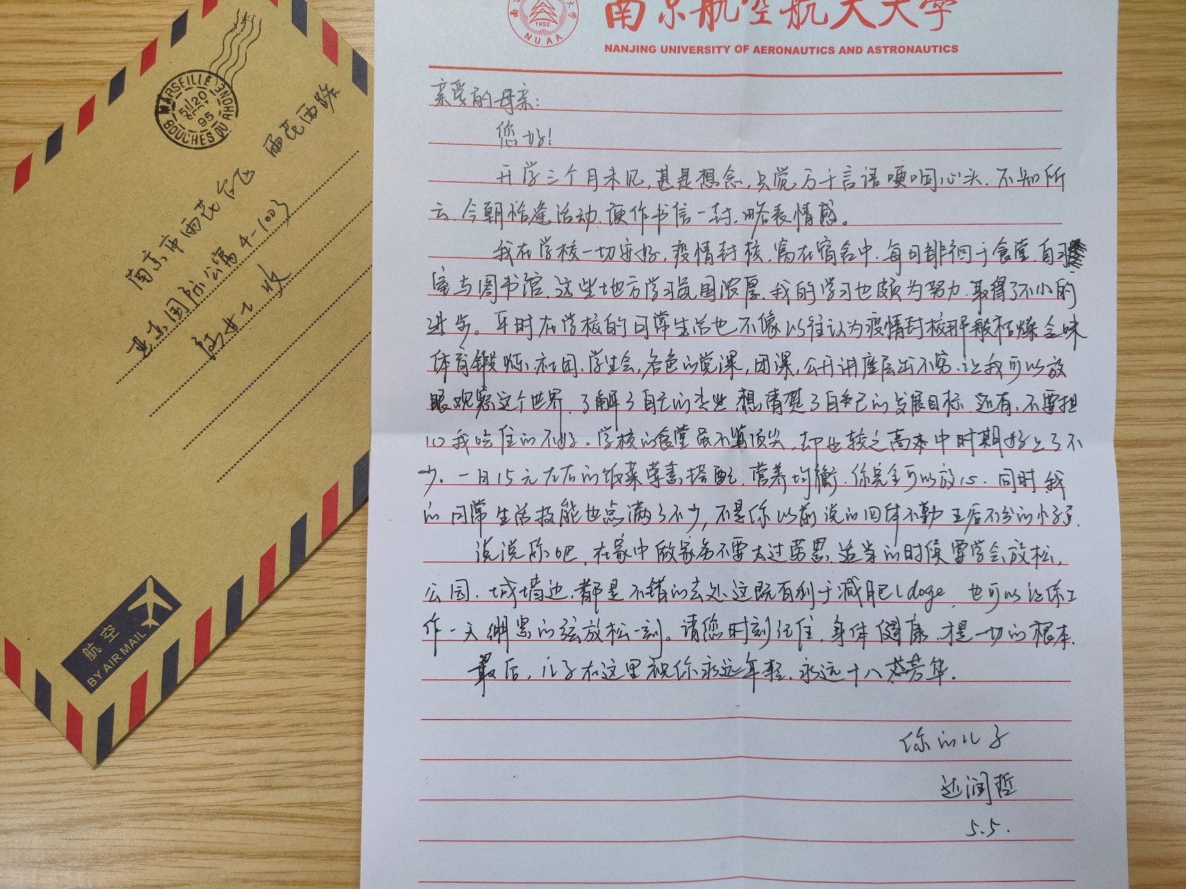 “数程山路长侵夜,千里家书动隔秋。”来自0721701的一位同学表达了自己的想法:“本次活动中我们获益良多。我们有幸生活在一个网络发达的时代,沟通不再成为难题。上大学,是许多人第一次离父母这么远、这么久。借由此次活动,同学们写下一封家书,表达对父母的思念、感谢,从家人那里寻找前行的力量。”