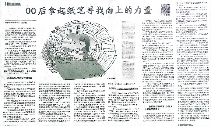 疫情之下,抗疫志愿者、工作人员和生活在一起的老师,他们不辞辛劳,为同学们服务,保障同学们的学习和生活。他们给人以一种向上生长的力量,同学们用纸笔描绘他们力量,表达对他们的感恩。