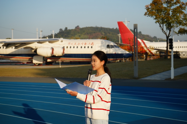 飞行器适航技术专业孙畅同学作为学生代表发言。她号召同学们深入学习党的二十大精神,牢记党对青年群体的谆谆教诲、殷切期望,以更坚定的信仰、更宽广的格局、更过硬的本领,践行爱国奋斗精神、不忘航空报国初心、笃行民航强国使命,在学习中增长知识、锤炼品格、砥砺奋进、勇毅前行。她鼓励每一位同学遵循“团结、俭朴、唯实、创新”的优良校风,践行“智周万物,道济天下”的校训精神,怀着爱校荣校的真挚情怀,主动把个人追求、理想融入党和人民的事业之中,厚植家国情怀,坚定报国之志,以奋斗绘就青春底色。