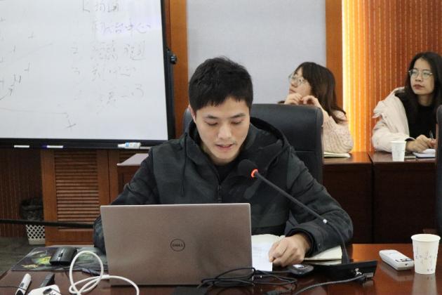 随后,张春伟博士作为学生代表汇报了纵向党支部和“五好”导学团队建设情况,主要从思政德育、科研业绩、培养模式、师生关系、文化氛围五个方面详细地介绍了团队从去年12月立项以来所开展的一系列团队建设举措及其取得的成果。团队以发挥纵向党支部战斗堡垒作用为牵引,将师生从游、导学共建的理念融入教学科研的全过程,营造了浓郁的文化氛围,探索出颇具特色的培养模式,一年来取得长足的进步。