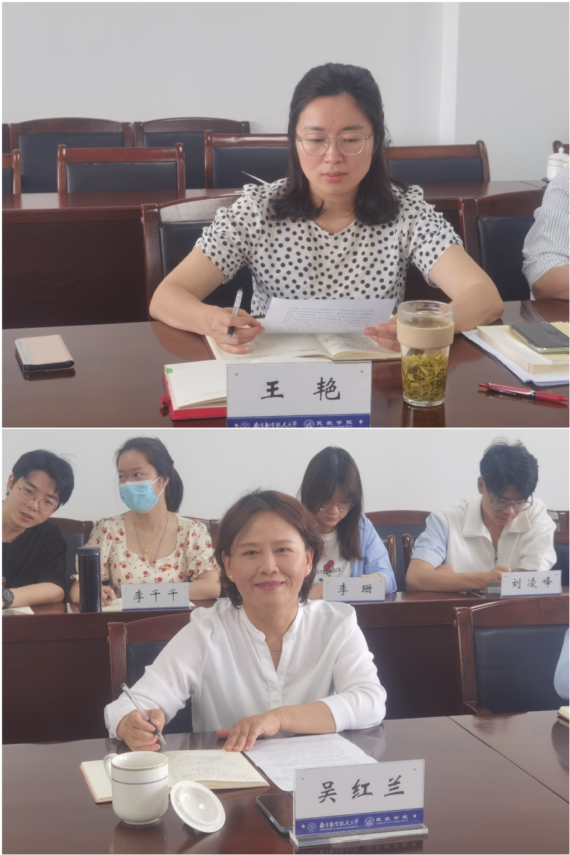 在重点发言环节,党委副书记王艳和院长助理吴红兰分别结合学院情况和工作实际分享了学习体会。