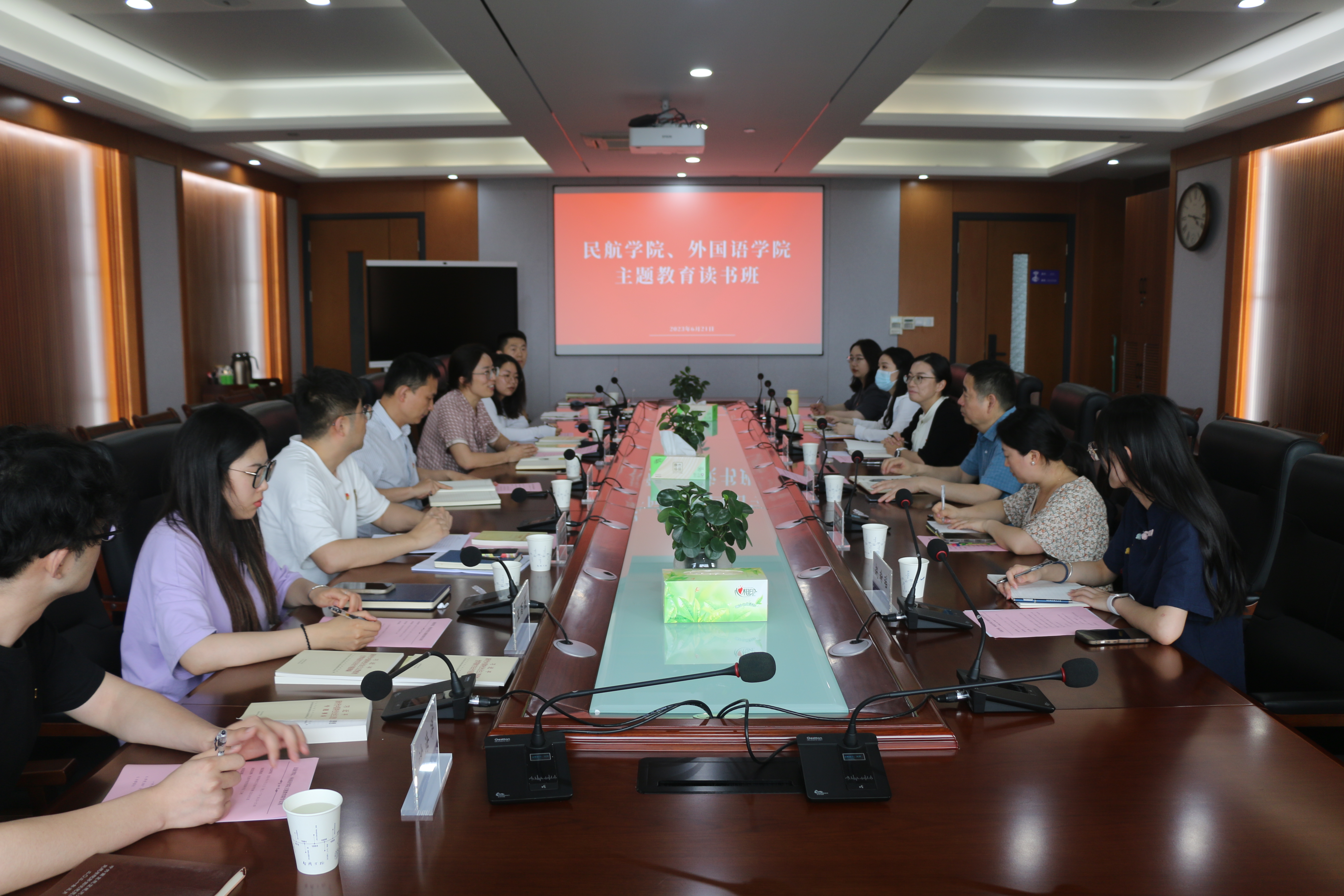 6月21日,成人抖音 、外国语学院学工、教学团队联合开展主题教育联合读书班,成人抖音 党委副书记王艳、副院长田勇,外国语学院党委副书记吴科颖、副院长徐以中,两学院全体辅导员参加读书班。