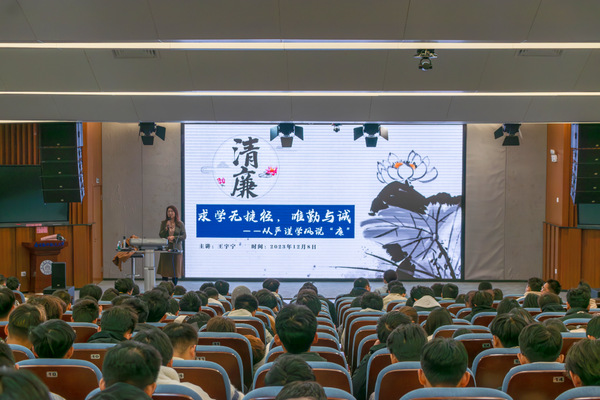 12月8日,成人抖音 举行“求学无捷径,唯勤与诚——从严谨学风说‘廉’”的廉洁治学主题讲座,邀请校内“青廉”讲师团成员、艺术学院党委副书记王宇宁主讲。学院党委副书记王艳、2023级本科生共计300余人参加活动。