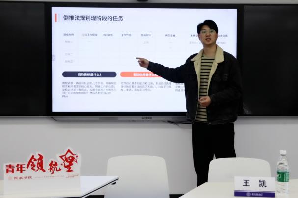 本次训练营首先由我院2013级校友、28所空管实验室团支部书记王凯进行“职引前程 点亮未来”主题分享。他结合自身经历,从“职业规划方法”、“行业岗位信息搜集”、“倒推法规划阶段任务”和“就业竞争力提升”4个方面与同学们分享自己的切身体会和经验建议。他结合实际案例详细列举了大学生在求职应聘及生涯发展初期可能面临的诸多问题,从底层逻辑及现实意义的角度分析了尽早开展职业规划的重要性。他鼓励同学们在学生时代勇于开拓,走出舒适圈,不断修学储能、丰富自我,在多种尝试中明晰个人目标并有针对性地制定计划,提升自己的就业竞争力。