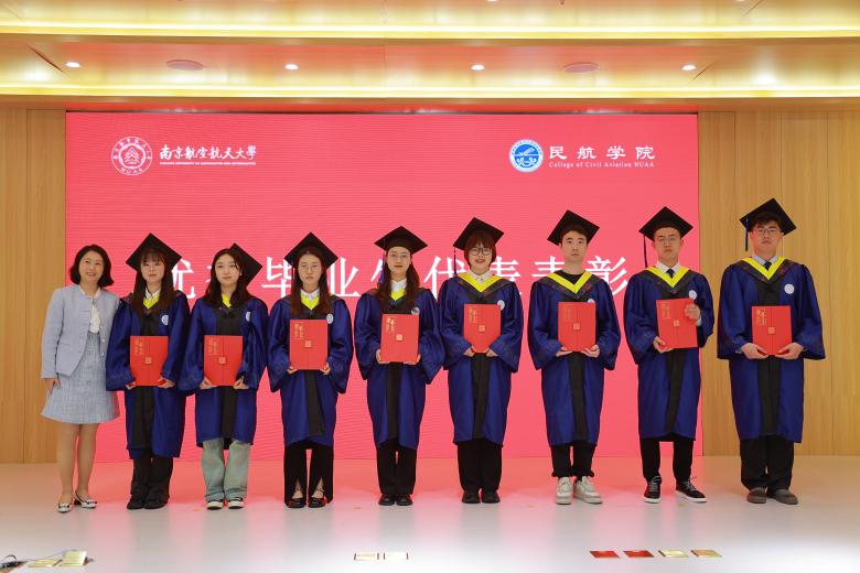 优秀毕业生冯慧琳代表全体2024届研究生向母院致以崇高的敬意,向传道授业的老师、相伴前行的同学和关心爱护的家长表达由衷的谢意,并表示将始终牢记智周万物、道济天下的校训,以强国情怀与民航精神为指引,让青春在全面建设社会主义现代化国家的火热实践中绽放绚丽之花。