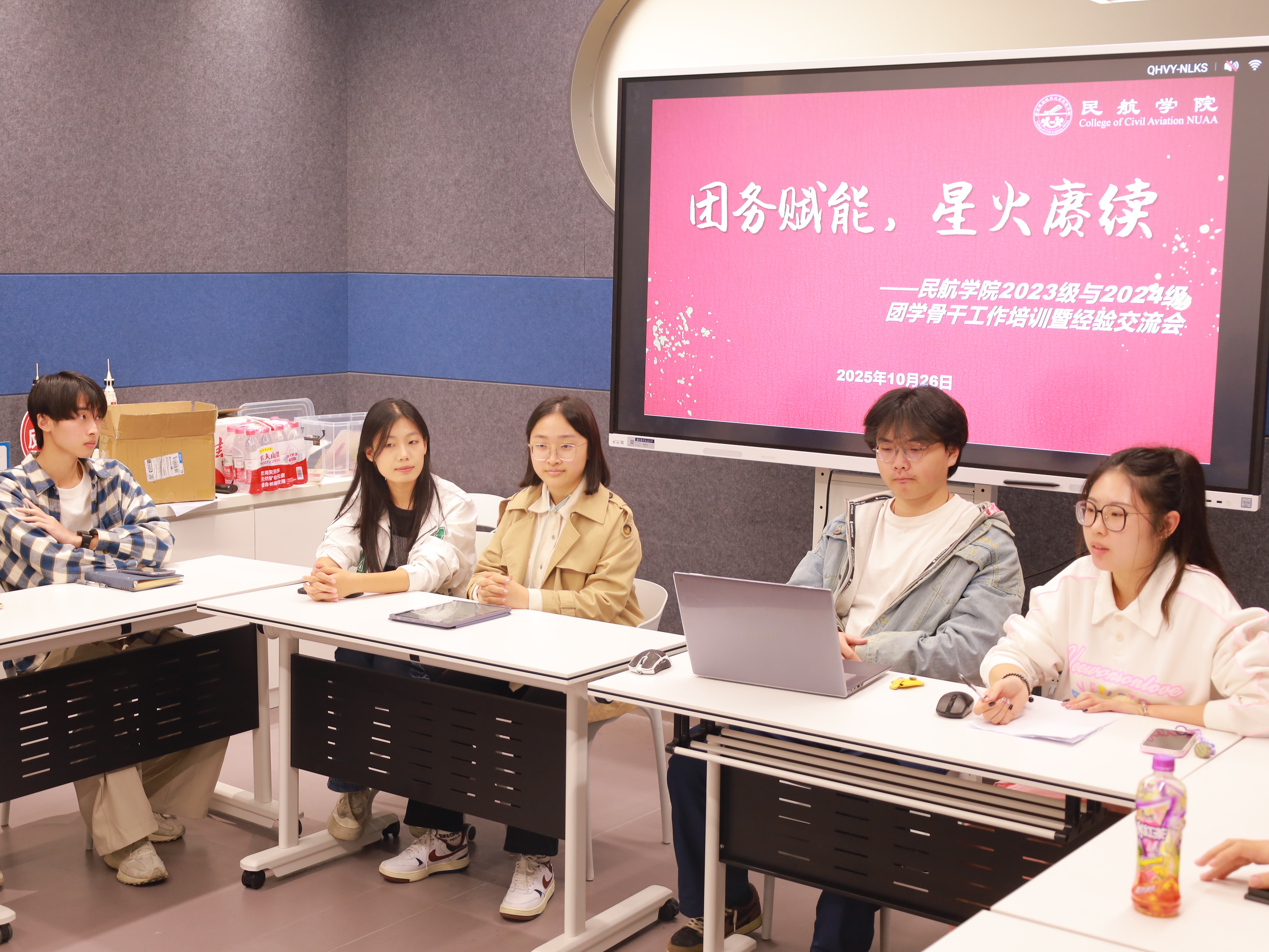 为加强团学骨干队伍建设,进一步提升学院团学工作质量和水平,10月26日,成人抖音 在“一站式”智慧民航创新工坊成功举办“团务赋能,星火赓续”主题团学骨干培训暨经验交流会。学院本科生辅导员王雨薇、2023级团学骨干代表和2024级全体团支部书记及团总支成员参与活动。