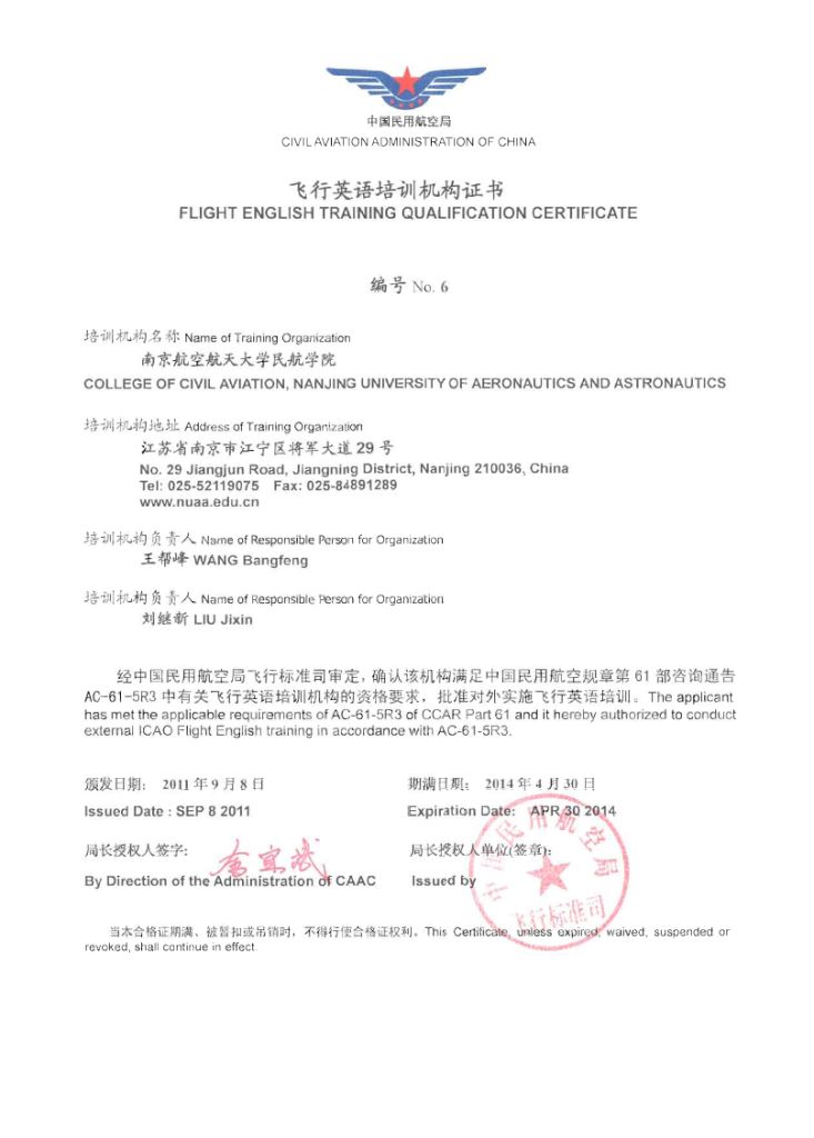 南航大成人抖音 ICAO飞行英语培训机构证书