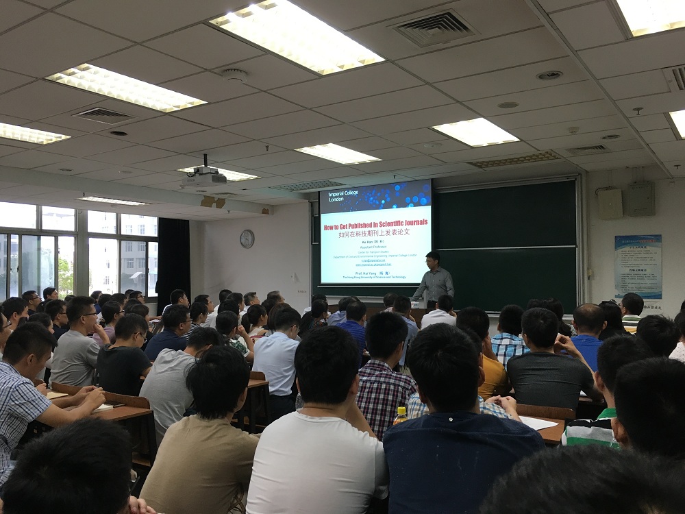 2016年9月6日下午4:00,韩科博士在1号楼10108教室做了一场题为“如何在科技期刊上发表论文”的学术讲座。韩科博士首先介绍了发表论文的重要性,并根据目前学术期刊的出版趋势分析如何选择研究课题,如何选择合适的期刊投稿等方面的内容。然后针对英文SCI期刊发表的要求,内容、结构、撰写技巧以及审稿过程等方面给广大的老师和同学提供建议。最后,在座师生就论文写作、发表等问题与韩科博士进行了交流和讨论。我院部分教师、博硕生、本科生共100多人参加了这场学术报告。