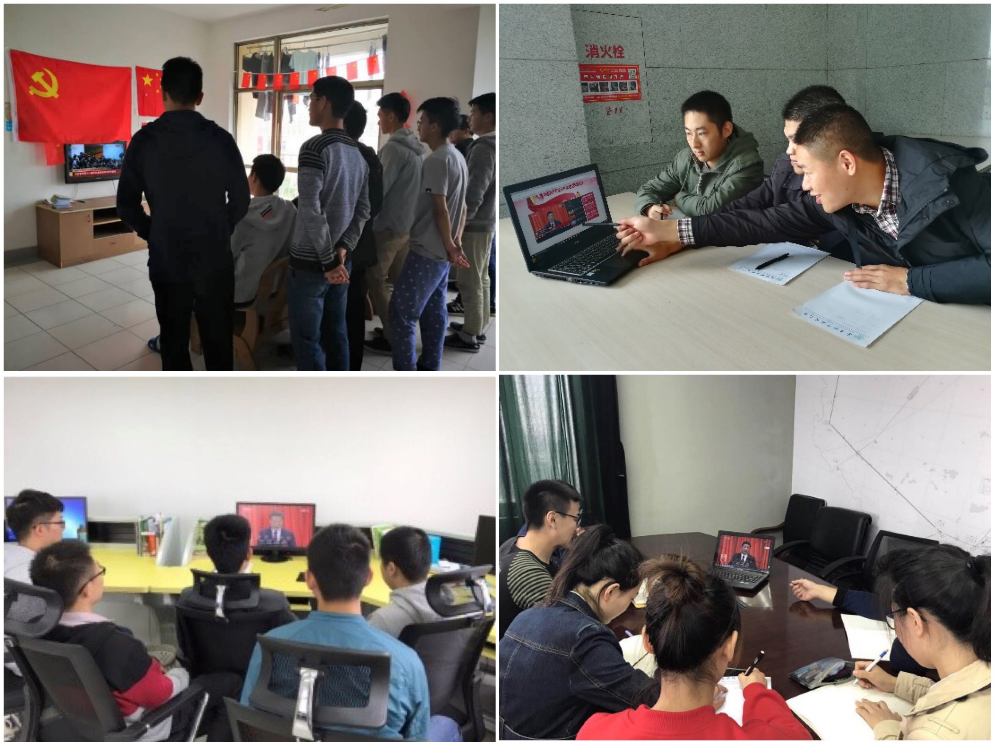 与此同时,学院还积极组织各年级以“十九大寝室直播间”、“同班级同看十九大”、“师生一起看十九大”等形式一起观看十九大开幕式及相关专题报道。本科生各年级开展“一党一心、一章一弛” 党章学习交流会,共同学习修订版的党章。研究生围绕“献礼十九大,学思悟行共逐梦,砥砺奋进续华章”开展十九大学习周活动,提振精气神,筑牢学生党支部的“红色堡垒”。