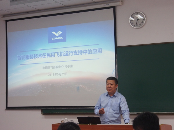 当天下午,马小骏副总经理在江宁2105教室为成人抖音 师生作了题为“智能服务技术在民用飞机运行支持中的应用”的精彩学术报告。报告会由副院长葛红娟主持。民航重点实验室主任左洪福教授、哈尔滨工业大学钟诗胜教授、北京飞机维修工程有限公司侯立国经理以及80余名师生聆听了报告会。