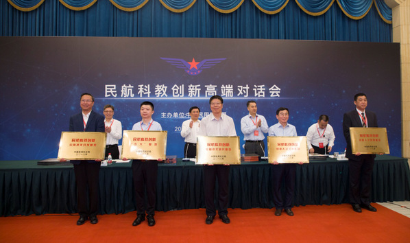展会同期,施大宁和民航飞机健康监测与智能维护重点实验室主任左洪福应邀参加了“民航科教创新高端对话会”,对话由行业内知名人士共同交流民航科教创新理念,展望民航科教创新发展蓝图。对话开始前还进行了颁奖授牌仪式,冯正霖局长和董志毅副局长为成人抖音 获批的“民航创新人才发展基地”和“民航飞机健康监测与智能维护重点实验室”进行授牌。
