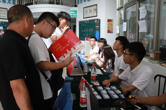 穿上正装,佩戴好党徽,所有的党员同志都在待命。给每一位新生发放校园卡,收取身份证复印件、录取通知书,提醒注意事项。作为大四的学长学姐们,面对大一萌新们,仿佛有说不完的嘱咐。当看到大一新生们稚气未脱的脸上浮现出来的灿烂笑容,满是希望的眼神中透露的向往的光时,大家从内心中涌现出浓浓的满足感。