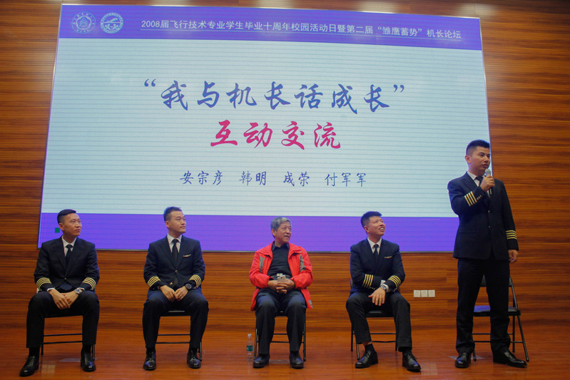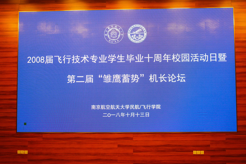 2018年10月13日,2008届飞行技术专业学生毕业十周年校园活动日暨第二届“雏鹰蓄势”机长论坛在南航大将军路校区顺利举行。17名南航大毕业的优秀机长代表怀着激动的心情回到母校,担任本届机长论坛的开讲嘉宾,受聘“机长班主任”,反哺母校。