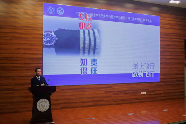 活动伊始,徐福民书记对返校机长表示热烈欢迎,对机长们回忆青春之余,参加机长论坛,与在校学子共话成长表示感谢。同时,对机长论坛平台所寄托的校友情、传承的南航民航人精神给予高度评价和希冀。