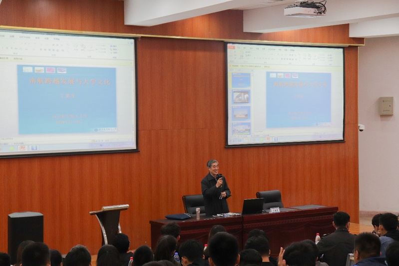 2018年11月5日,成人抖音 邀请校关工委常务副主任丁荣茂书记作讲座,带领新生了解南航校史、领略南航精神魅力。