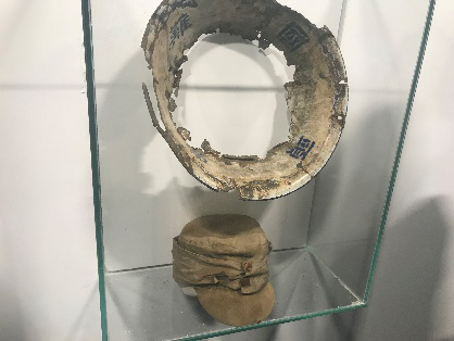 展厅右侧,陈列着当时士兵所使用的器物,中国军队佩戴的军帽、刺刀以及步枪。陈刚讲解员为积极分子讲述着1937年12.4至12.13那段腥风血雨的战争过程,面临着中日国力的巨大悬殊,面临着日军一次又一次的劝降,中国人民以炮火回击!用生命反抗!战场填满中国战士的尸体,阵亡率高达90%,但是,每在雨花台地区前进一寸,日军都要付出血的代价。南京保卫战的失败,使得南京城沦陷日军之手,但它在历史上确有着不可估量的重要地位,历史无言,精神不朽,它为日后的民族抗战精神添上了浓墨重彩的一笔。