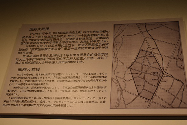 而我们也不是孤立无援的。在当时,我们受到了其他国家的友人对我们的无私援助。治病救人的威尔逊医生,帮助庇护中国公民的拉贝和收容妇女儿童的魏特琳女士,他们都见证了南京大屠杀的恶行,是他们在中国陷入危难之时伸出了援助之手。而在南京大屠杀过去的几十年后,华裔女作家张纯如收集大量史实资料,出版了英文版的《南京大屠杀》,其中描写了日军在南京强奸、虐待、杀害大批中国平民的详情震惊世界。南京民间抗日战争博物馆收录了由张纯如亲笔签名的《南京大屠杀》的书籍。他们为中国和平和世界和平做出了不可磨灭的贡献,也是这段惨痛的历史中不可缺少的一部分。