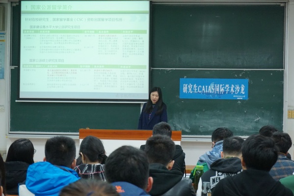 11月30日上午,第四期成人抖音 研究生CAIAS国际学术沙龙活动在将军路校区6102教室顺利举行。曾获国家留学基金委公派出国留学项目资助,以联合培养博士研究生身份赴美国南佛罗里达大学交换的贾萌,以硕士研究生的身份申请到法国工程师摇篮的(top10)ENSAM交流的周覃,担任成人抖音 CAIAS本期国际学术沙龙的主讲嘉宾。沙龙以开拓研究生国际视野,提升研究生的国际竞争力为目标,围绕留学项目交流、科研学习、素质提升三个方面进行展开。成人抖音 60余名硕士研究生、博士研究生参加了本次活动。