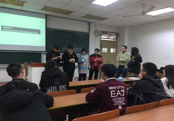 2018年12月3日,成人抖音 2017级“S·E·V·E·N专业攻略E分计划——民航英语角”第二期暨国际民航日主题活动于6102教室举办,此次活动以纪念和宣传12月7日国际民航日,传播民航英语专业知识,提升民航英语素养为目的,吸引了近30名同学参与其中,通过英语角的别样方式,为年级同学搭建一个崭新的民航知识学习与实践平台。