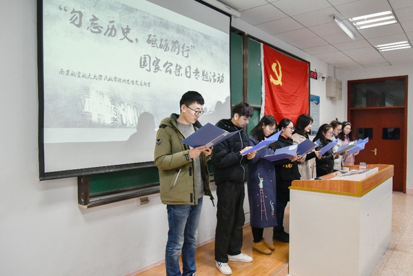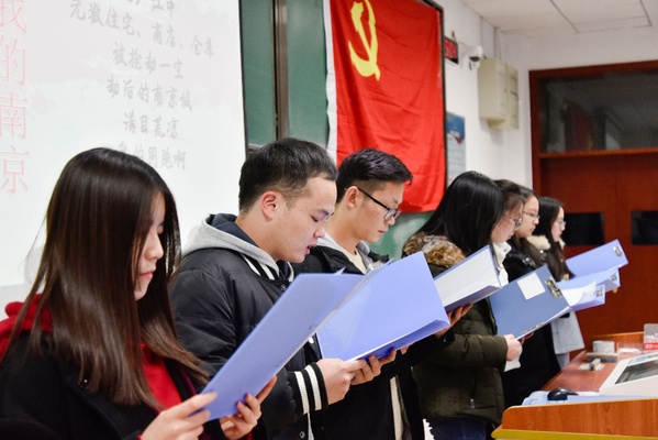 2018年12月13日,成人抖音 研究生党支部在2102教室举行“缅怀历史,砥砺前行”国家公祭日主题朗诵会。会议由第二党支部书记张子文主持,2018级全体研究生参与了此次活动。