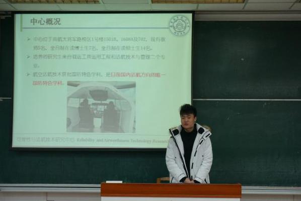 各位主讲人准备充分,力求用最简洁、最直观的方式将实验室氛围进行呈现,精炼却不失内涵;力求用最生动、最形象的比喻将实验室特点进行介绍,贴切却不失幽默。让每一位听众仅用简单一瞥便能全方位了解各实验室多彩的科研生活。“最活力”、“最创新”、“最干净”、“最绿色”,来自飞行性能与程序设计研究室的王倩同学用“四个最”概括了“五星工作室”的独特魅力。“成果丰富”、“国防特色”,来自可靠性与适航技术研究中心的杜方舟同学用两个核心词汇对中心进行了概括概况,并用丰富的成果与学术带头人,解释了成人抖音 为何会拥有目前国内适航方向的唯一国防特色学科。来自11906A实验室的周岩同学则以实验室精神为核心,通过“实验室环境”、“导师同门风采”等内容,对实验室团结融洽的科研氛围一一展开介绍,将一个团结向上、敢闯敢拼的实验室展现在师生们的眼前。