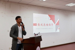 活动第三个环节即为“企明星”大讲堂。来自顺丰航空的邹青松先生针对学生在无领导小组讨论中的表现及面试技巧进行了总结:面试者在面试中将通过每位面试者的表现,把握面试者真实心理和性格,邹青松还点明学生在发言时应把侧重放在逻辑的阐述而不是对错的争辩,条理清晰、逻辑分明、言语温和有力的发言才能获得面试官的青睐。