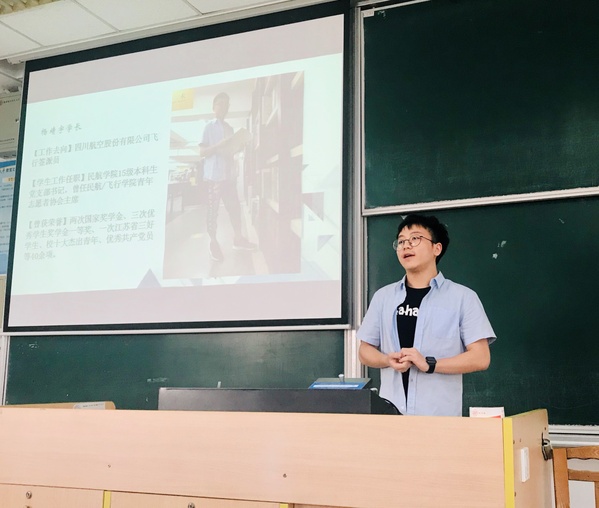 仇兆巨老师作为一位本科、研究生皆毕业于南航并且担任管制员已有7年经验的空管人,分别围绕对空管之一职业的认知、职业发展的现状、大二学生所需做出的努力以及空管职业发展的未来展望等四个方面进行了分享与讲述,通过具体的事例,更加鲜明地勾勒出空管人的形象特色,使同学们加深了对职业印象的了解。