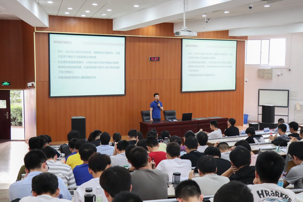 田崇伟首先以辨析“求职”与“就业”的两个概念开场,阐释两者的区别在于我们是“预见”还是“遇见”未来的自己,由此使同学们明白做职业规划的重要性。田崇伟指导大家做好职业规划的关键点一是寻找自己的初心,二是洞察未来的趋势,最后还给出他对准毕业生们的职业选择建议。