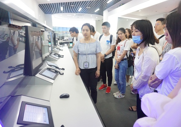 紧接着,同学们来到了360度全景塔台模拟训练系统展示中心,该展示中心真实模拟了南京禄口机场塔台的情况,在场的研究生们还饶有兴致的戴上了VR眼镜,亲身体验3D虚拟塔台技术效果。肖雪飞主任在同学们体验技术的同时,还就目前空管在飞行流量管理、自动化系统等方面的最新技术成果给同学们做了分享,同学们无不为其技术而震撼,更加激起了民航学子们心中的航空报国梦。详尽而精准的讲解,让同学对当今民航空管新技术有了别样的了解,深刻地了解到行业目前的新问题、新热点以及新趋势,强化了研究生们建设“强安全、强效率、强智慧、强协同”的“四强空管”的追求与抱负,坚定了研究生们助力民航高质量发展、实现民航强国的决心与信念。