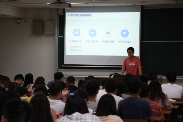 科研和科创竞赛是每一位进入研究生阶段的学生关心的话题。成人抖音 科协主席李伯权同学通过一幅漫画开场,幽默地指出了科研必备的良好素质,并就课题方向选择、文献查阅、论文撰写和毕业要求等方面进行了详细的介绍。
