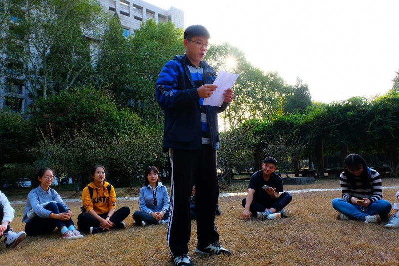 参观结束后,成人抖音 本科生第二党支部召开“反思自省展望未来”户外讨论会。对照先进典型、身边榜样,认真检视不足,马行知同志作为优秀党员代表发言,讲述大学四年的不足、收获、经验与今后目标,其他党支部成员也作了深刻反思与改进探讨。