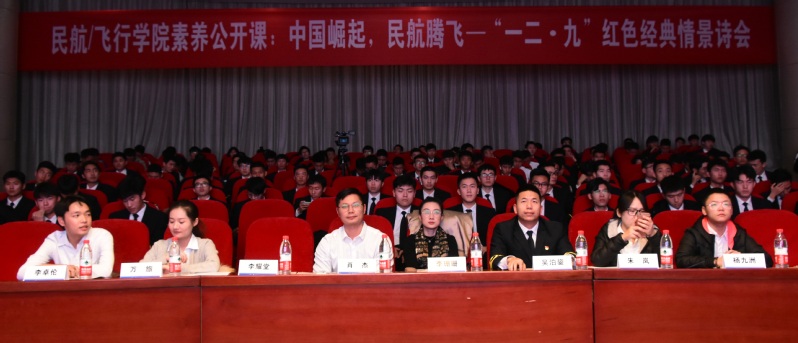 12月13日晚,民航/飞行学院在将军路校区一号楼四楼报告厅举办了2019年素养公开课:中国崛起,民航腾飞—“一二·九”红色经典情景诗会。艺术学院李珊珊老师,成人抖音 团委书记肖杰,辅导员朱岚、吴泊鋆、王爱伟、万旅、杨九洲、李卓伦、李耀堂以及三百余名同学参加了此次诗会。