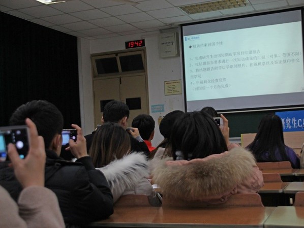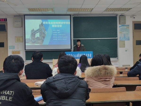 为增进成人抖音 研究生对出国访学交流的经验, 12月19日晚7点,成人抖音 于将军路校区六号楼6403教室举办了“出国访学交流”第十三期国际学术沙龙。本次活动特邀何修齐同学作为嘉宾,他曾于今年7月至10月在英国克兰菲尔德大学进行了为期三个月的短期访学。成人抖音 硕士研究生参加了本次活动。