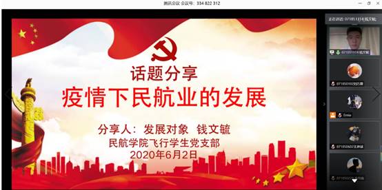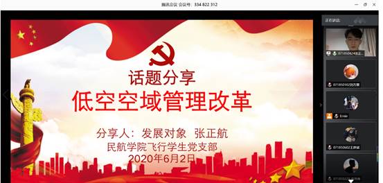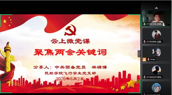 2020年6月2日,民航/飞行学院开展以“学习两会精神,做新时代飞行追梦人”为主题的信仰公开课,以会场外的青年“小视角”,折射出新一代飞行追梦人的“大群像”,公开课由飞行学生党支部副书记黄邹洵主持。