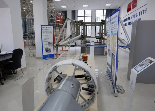 下午在论坛主办方组织下,与会同学来到航天学院B101航天进入减速与着陆技术实验室参观,见到了星载大型可展抛物柱面天线、缓冲行走一体化着陆等前沿航天设备。
