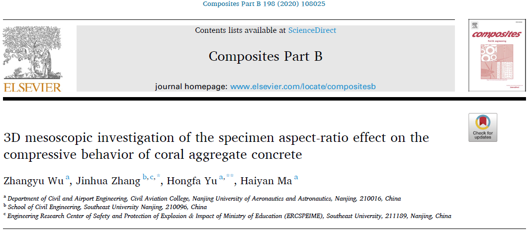 近期,国际复合材料顶级期刊《Composites Part B: Engineering》(SCI影响因子:7.635)连续发表了成人抖音 成人抖音 土木与机场工程系“先进土木工程材料与结构”课题组关于珊瑚混凝土细观力学性能的最新研究进展“3D mesoscopic investigation of the specimen aspect-ratio effect on the compressive behavior of coral aggregate concrete”和“Coupling effect of strain rate and specimen size on the compressive properties of coral aggregate concrete: A 3D mesoscopic study”。成人抖音 博士研究生吴彰钰为论文第一作者,东南大学土木工程学院张锦华教授和成人抖音 成人抖音 博士生导师余红发教授为论文通讯作者,麻海燕讲师为第四作者。该系列论文成果由成人抖音 与东南大学联合完成,成人抖音 为第一署名单位。