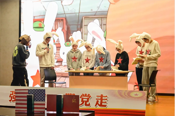 首先由2020级优秀学生代表为同学们带来话剧表演《那年那兔那些事儿》,带领同学们了解1963年前中苏关系的背景。生动形象的表演重现了先辈们经过不懈的努力,凭靠算盘成功研制中国第一颗原子弹的历史,幽默风趣的表演引得同学们开怀大笑,场下掌声雷动。话剧结束,成人抖音 2020-2021年优秀团干代表、0720103团支部书记赵旭阳同学为大家讲述了1963年中共代表团和苏共代表团在莫斯科举行会谈的故事,与在座同学分享了自己对这段历史的见解,并呼吁同学们一起学习党史,了解党史,在学习忠做到知党、爱党、荣国、爱国。