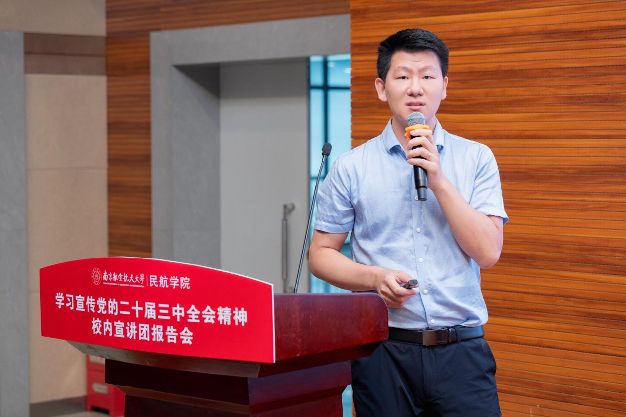 刘向雷以“学习贯彻二十届三中全会精神 加快民航绿色低碳转型”为题,围绕全会的基本情况、深刻领会和把握全会的重大意义、习近平总书记关于全面深化改革的重要论述、全会对进一步全面深化改革做出的重要部署等方面进行了系统全面的解读。重点阐释了二十届三中全会提出的深化生态文明体制改革相关内容,并针对国家提出经济社会全面绿色转型的重大需求,分享了对民航业绿色转型、绿色能源航空器研究的一些思考以及近年来学校在全电推进动力系统、混合动力、绿色航空燃料制备、航空器综合能量管理等研究领域取得的研究成果,希望民航师生们也能在“双碳”目标达成的道路上贡献出属于南航成人抖音 的智慧和力量。