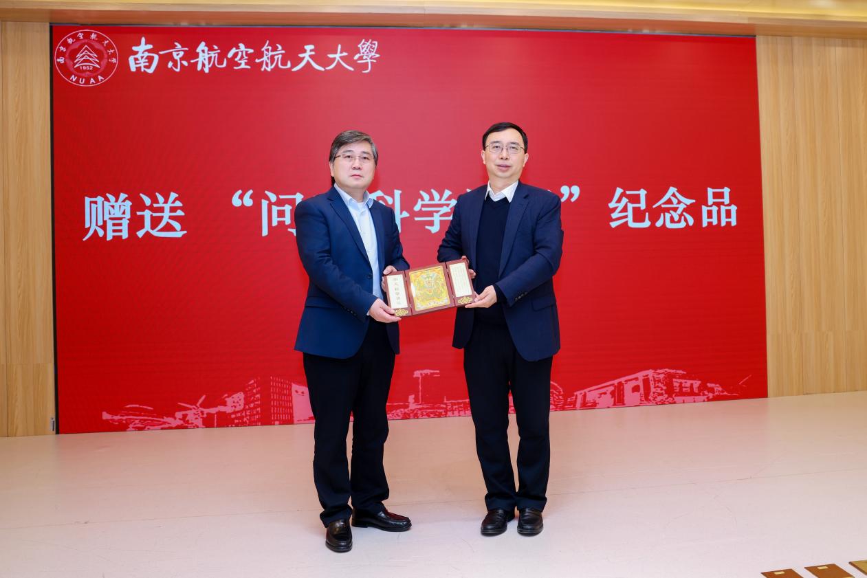 姜斌代表学校向王自力院士赠送了“问天科学讲坛”纪念品。