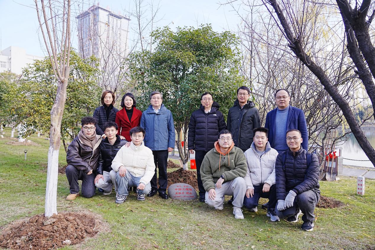 报告会后,王自力院士参观砚湖边“问天鼎”,与成人抖音 师生代表共同在“院士林”植树培土。