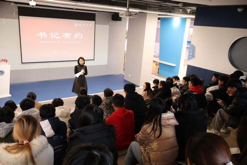 为加强学生科创素质能力培养,以科创实践助推专业学习,12月20日,成人抖音 在天目湖校区“一站式”智慧民航创新工坊举办“书记有约”活动。学院党委书记李君、党委副书记王艳、土木与机场工程系主任张锦华及中国国际大学生创新大赛获奖代表参加活动,辅导员王雨薇、唐琳及土木工程、智能建造专业50余名学生现场聆听。活动由王艳主持。